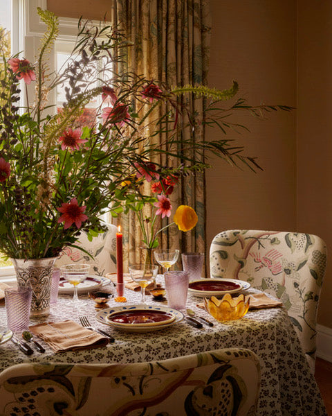 Simply Elegant: Delicate embroidery and rich tones bring warmth and sophistication to any tablescape.